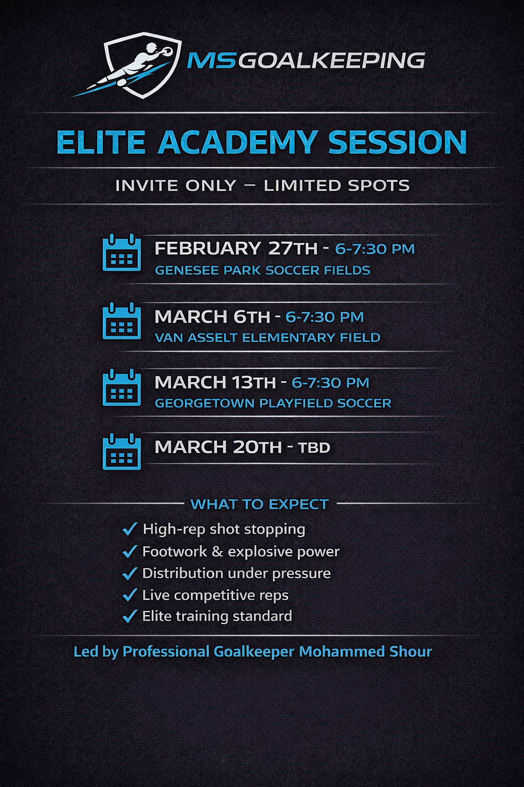 MS Goalkeeping is led by Mo Shour, a current professional goalkeeper with Tacoma Defiance.